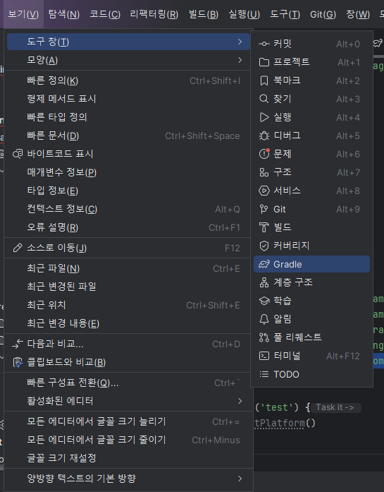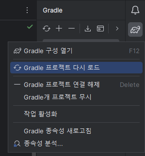 우측 상단에 프로젝트 우클릭 후 Gradle 프로젝트 다시로드하기