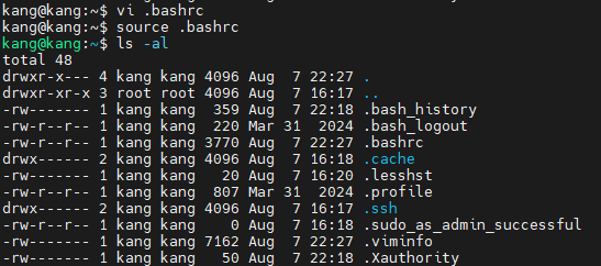 이후 꼭 source .bashrc를 해주셔야지 적용이 됩니다.