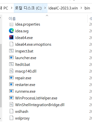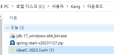 다운로드 폴더 안에 idealC-2023.3.win.zip이라는 파일로 설치됨