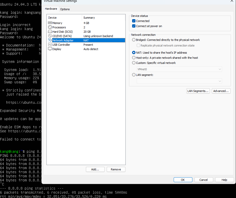 | [VMware] 인터넷 인터페이스 NAT IP대역 수정하기 (0) | 2025.08.24 |