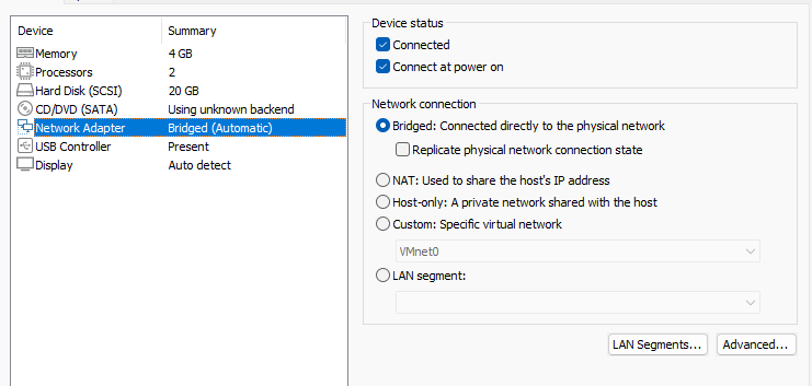 Bridged to : 란에 동일 한 이더넷 카드를 선택한다.
