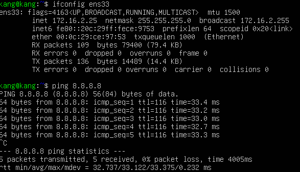 이후 서버를 시작하여 핑이 나가고 IP가 잘잡히는 확인 하면