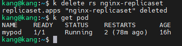 pod은 삭제가 안됨으로 rs(replicaset)을 삭제를 하면 됨