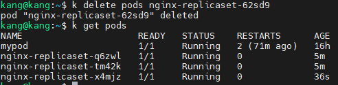 nginx-replicaset-62sd9해당 Pod은 삭제 되었지만