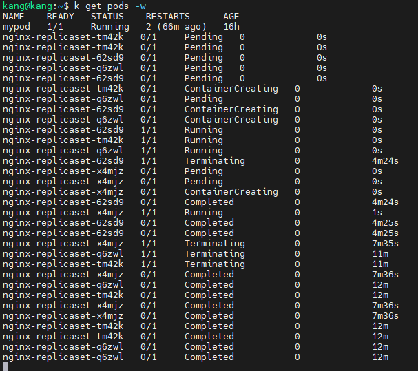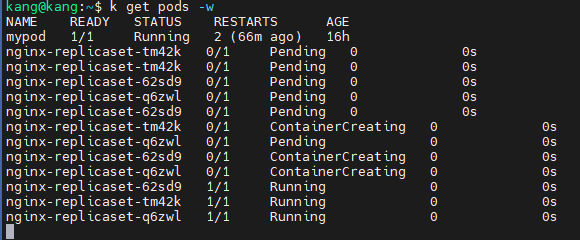 nginx-replicaset-x4mjz해당 Pod은 Pending -> ContainerCreating -> Running 상태로 되어
