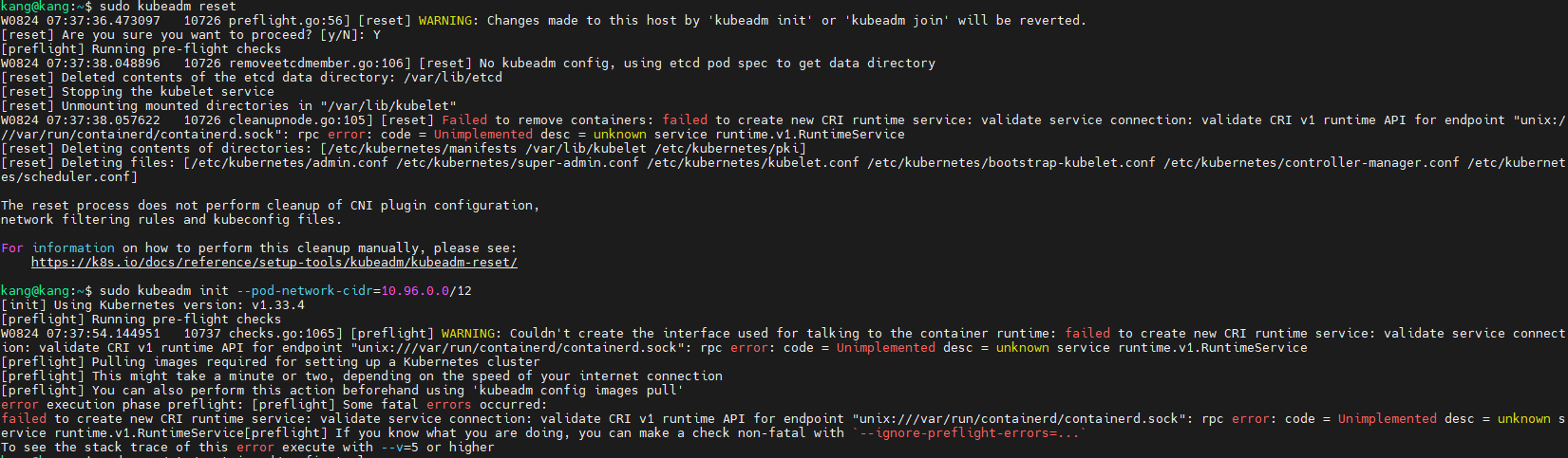 kubeadm reset을 하고 init을 했지만 동일 한 오류가 계속 나옴..