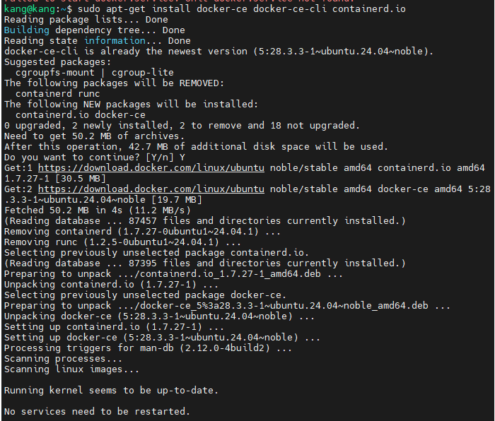 sudo apt-get install docker-ce docker-ce-cli containerd.io