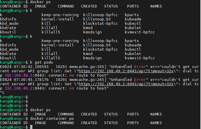 재설치 후 kubernetis 컨테이너가 사라짐..