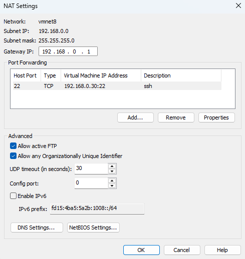 SSH접속이 안되면 NAT에서 PortForwarding 해줘야함