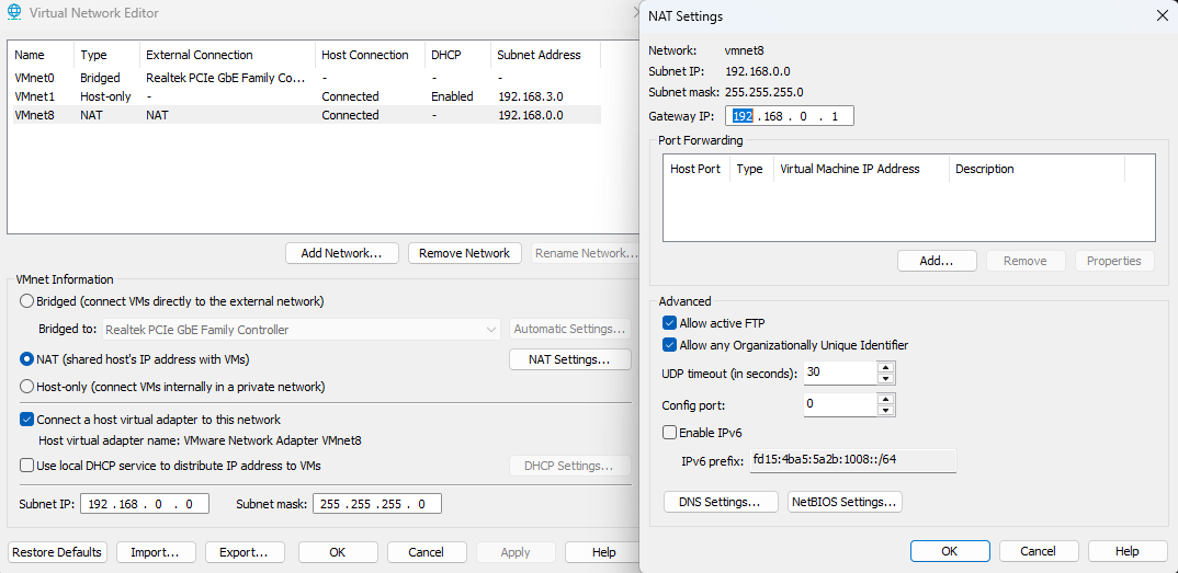 MobaXterm이 끊어져서 확인 해보니 NAT가 현재 대역이랑 다르게 되어 있었음