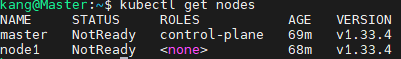 쿠버 네티스 설치하고 node확인시 해당 오류가 발견됨.