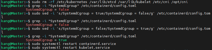 sudo sed -i 's/SystemdCgroup = true/SystemdCgroup = false/g' /etc/containerd/config.toml