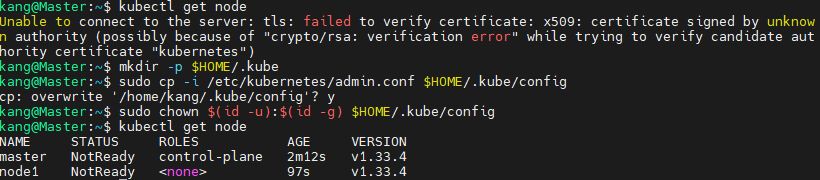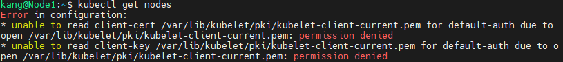 노트에서 kubectl get node를 하니 permission denied가 됨