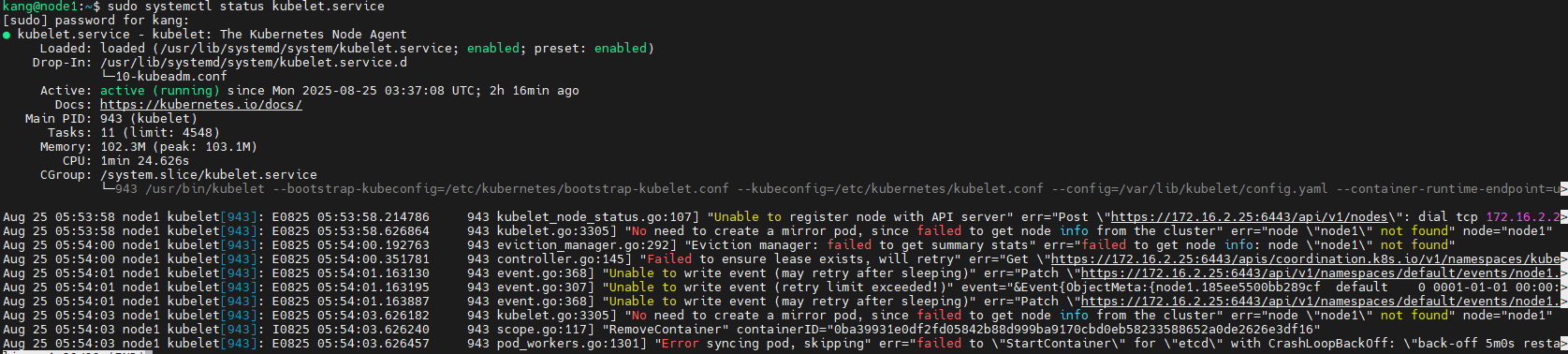아래 오류가 나오면 containerd restart, kubelet restart 둘다 하면됨