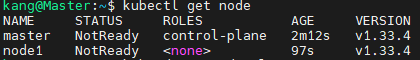 쿠버 네티스 설치하고 node확인시 해당 오류가 발견됨.