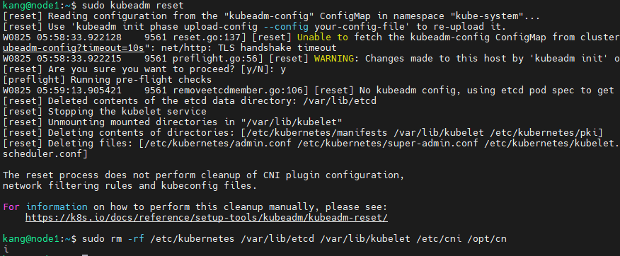 sudo rm -rf /etc/kubernetes /var/lib/etcd /var/lib/kubelet /etc/cni /opt/cni