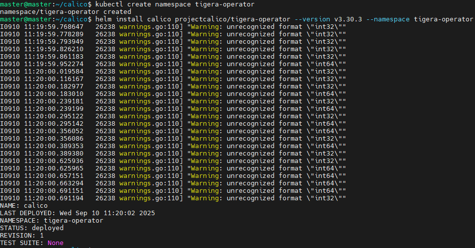 helm install calico projectcalico/tigera-operator --version v3.30.3 --namespace tigera-operator