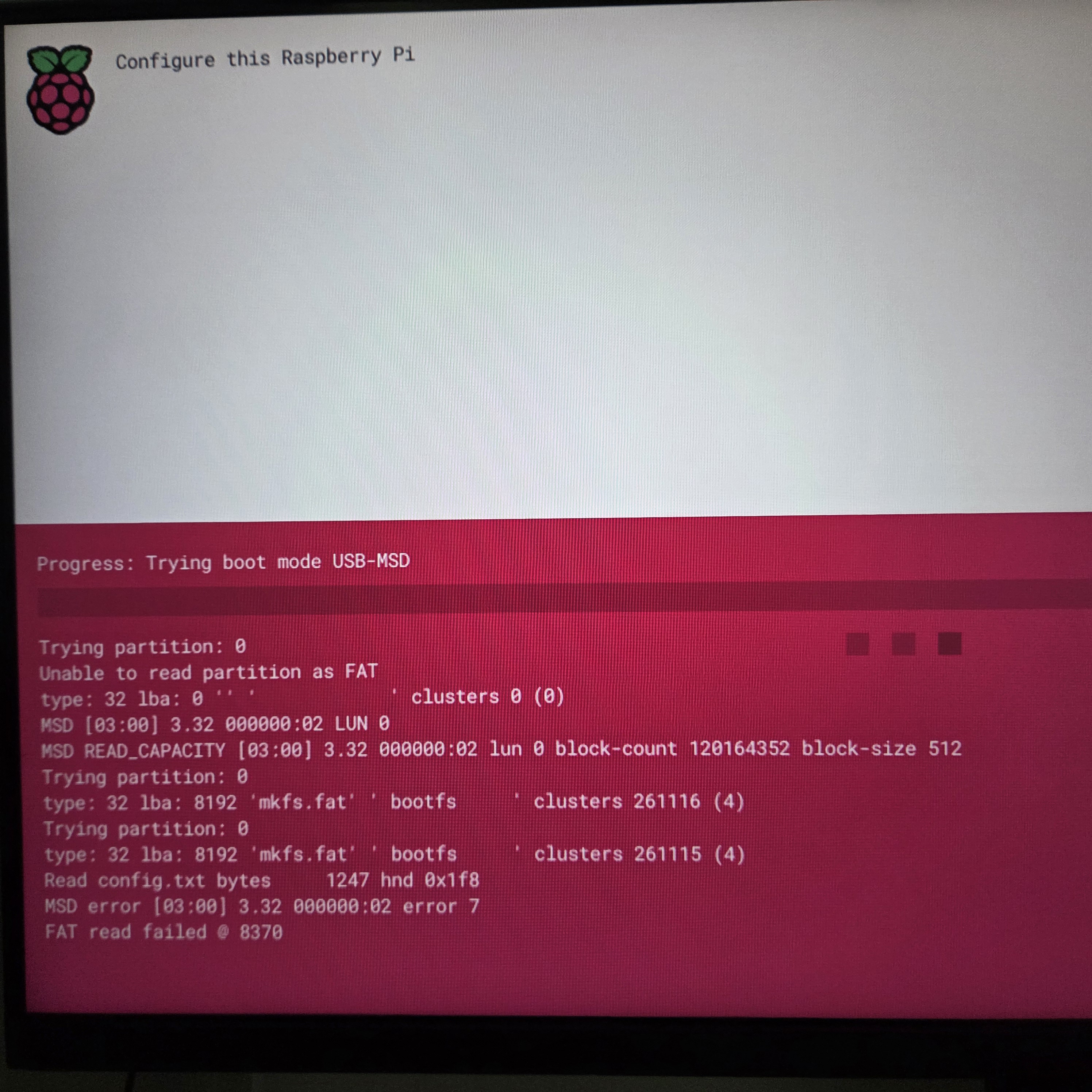 확인 해보니 FAT 파티션이 인식이 안되어 부팅을 못하는 상황